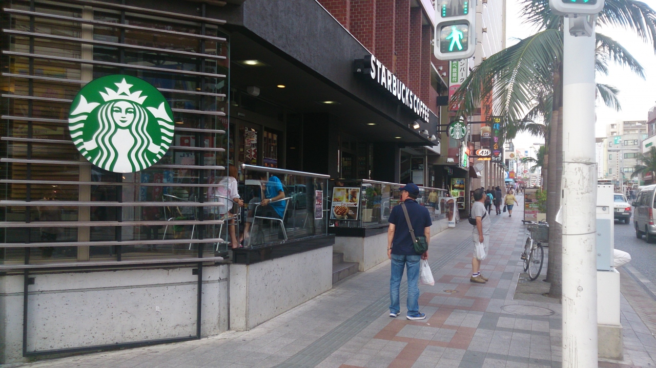 那覇は、いくら歩いても飽きない街です。でも、ちょっと一息つきたいとき、なじみのスタバがあると安心します。この店は、三方がガラス張りで明るい店内。しかも、オープンテラスもあるので沖縄らしさを満喫できます。普通は、こんなに交通量の多いところでは、コーヒーを飲みたくないのですが、沖縄に来たら別です。たいへん、雰囲気のよいスタバです。