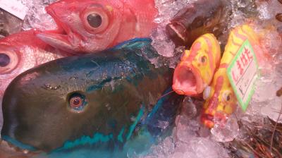 旅行に行くと、行ってみたいのがその土地の市場。特に沖縄のここは何回でも行きたい市場です。ゆいレールの牧志駅から歩いて10分。商店街が続くので10分歩くのは苦になりません。ここは海の幸や肉、野菜が安く買えます。しかし、見るだけでも楽しいです。色とりどりの魚、豚の顔、ヤギの肉など珍しい物が勢ぞろい。結局、買ったのは海ブドウと島らっきょとミミガという無難なものでしたが、たいへん楽しかったです。