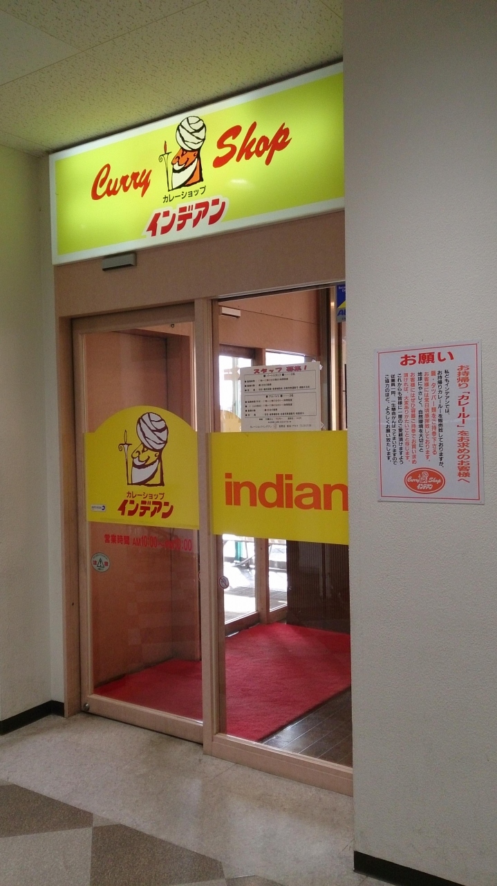 音更でインディアンを発見!場所は、帯広から音更に向かう木野大通に面した、ぴあざフクハラというショッピングストアの中です。昼はとうに過ぎていたのに、中には3組の客がいました。さすがインディアン。ルーは「インディアンルー」「野菜ルー」「ベーシックルー」の3種類ですが帯広出身者によると「通は2種類のルーをブレンドしてもらう」というので、私も「インディアンルーと野菜ルーをブレンドして大辛のカツカレーにしてください」と通ぶって注文しました。こんな面倒な事も、笑顔で対応してくれる店員さんに感謝。まもなく「インディアンルーと野菜ルーをブレンドした大辛のカツカレー」が来ました。感激。たいへんおいしくいただきました。もちろん帰りにはお土産としてルーを買いました。