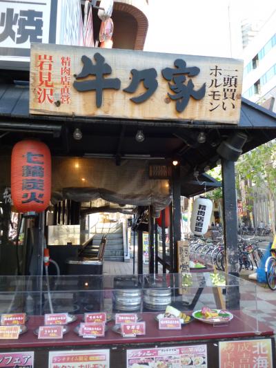 地下鉄大通駅から徒歩3分。肉屋が営む焼肉屋さんです。炭火のにおいに誘われて入りました。(うしのや)とよむそうです。グルメクーポンのホットペッパーを持っていくと、かなり割引になります。角にあって目立つお店です。