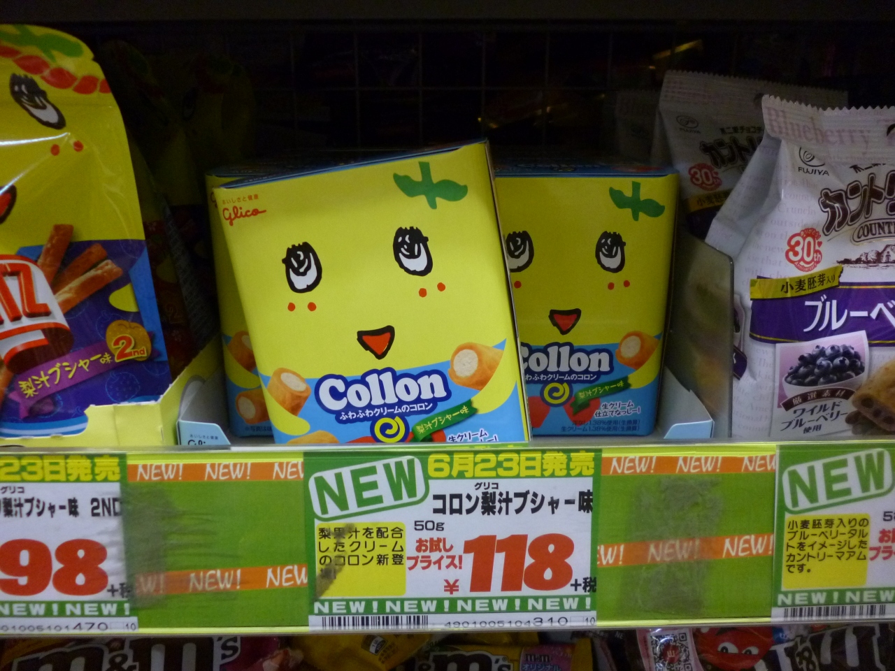 狸小路商店街にあるドンキホーテ、ぶらりと食品コーナーをみていると、6月23日発売新商品が並んでいました。「ふなっしーのクリームコロン」です。「ふなっしーが大好きなのでお友達にもお土産に10個も買いました。」