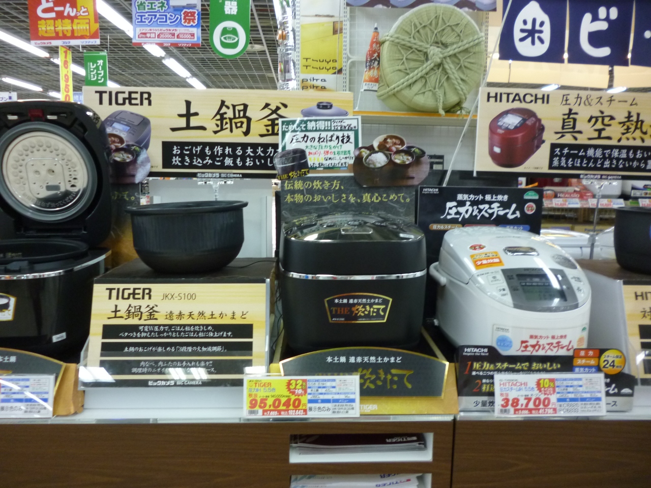 家電製品はビックカメラで買うと、マイルがつくのでよく利用します。今回は土鍋釜と、炊飯ジャーを見に行きました。平日の日中は、すいているので店員さんが細かく丁寧に説明してくれます。値段がちょっと高めなので今回は買わずに諦めました。