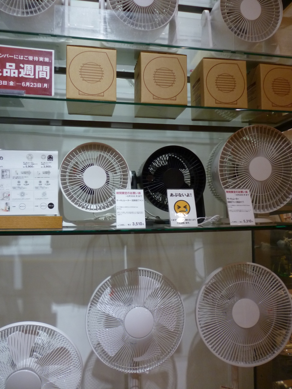 ステラプレイスの6階にあり、連絡通路を通ると隣のビックカメラとつながっています。扇風機をどちらが安いか行ったり来たり見比べました。オシャレを重視するなら無印良品で、値段も少し高めでした。機能はほとんど変わりないです。