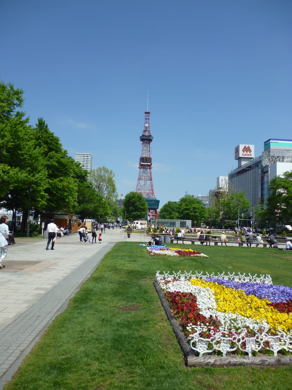 道路を挟んで反対側にあるのが、白い恋人パークで、そこでお菓子作りを見てバラ苑のかえりに車の中からチラリとみただけですが、かなりの広さでした。お花の香りがして癒される場所です。地下鉄宮の沢駅が最寄です。車で5分くらいでした。