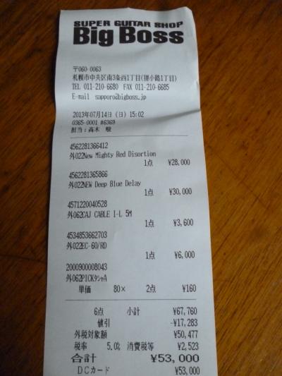 単品でかうより、何点かまとめて買うと割引してもらえます。交渉してみるといいです。コンパクトエフェクター28000円のものと、30000円のもの、さらにワイヤーが6000円。付属品3800円。これら全部を53000円にしてもらいました。