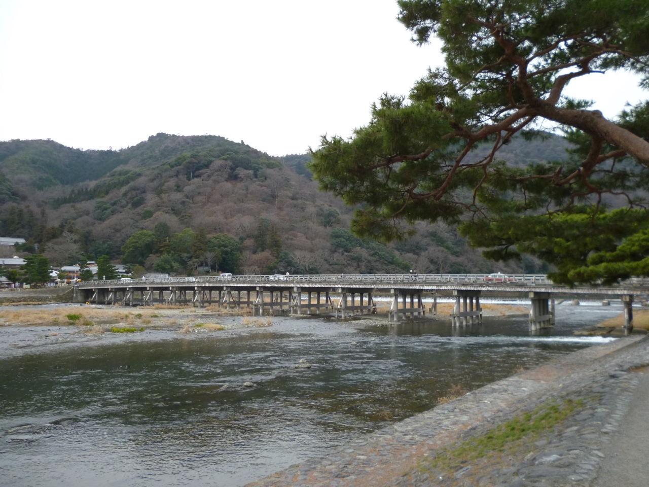 嵐山といったら渡月橋です。有名な橋です。渡月橋の上からみる嵐山の風景、そして橋から離れたところから見る渡月橋のある風景、どちらも見ることをおすすめします。紅葉や桜の時期は、たくさんお人でにぎわいますが、静かで人の居ない渡月橋もいいですね。