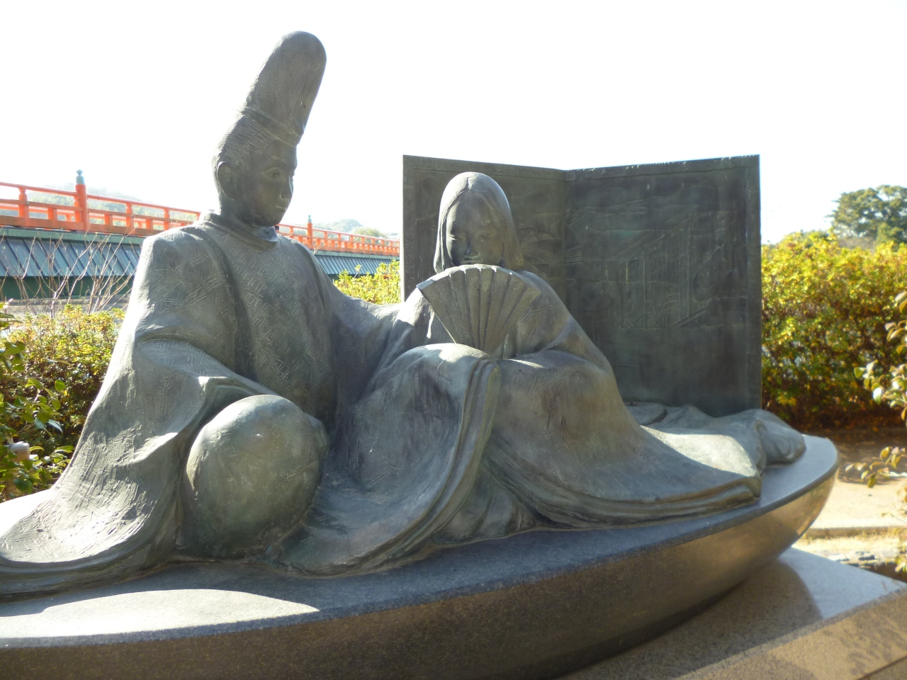 宇治橋を渡ってつきました。そこは源氏物語の世界です。平安時代の当時の生活の様子が人形などを使って展示してます。貴族たちの暮らしぶりを知ることができました。