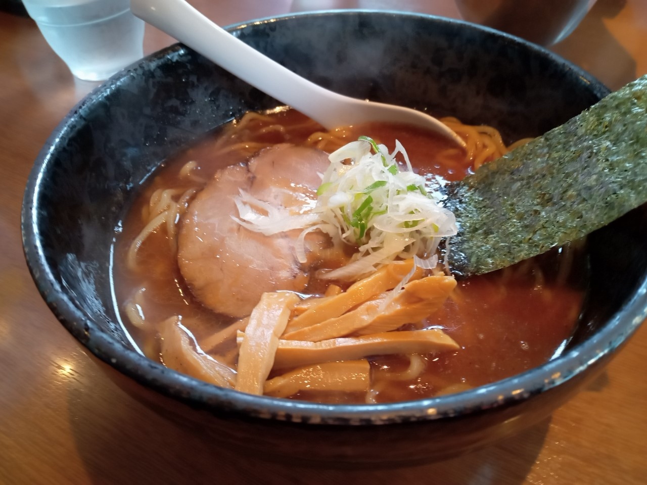 札幌市の地下鉄新さっぽろに直結したショッピングモールにあるラーメン店です。元々は、岩見沢市栗沢地区の「小鳩食堂」の流れをくむお店です。店内は、元気な昭和の時代です。この日は、「萬字らーめん」にしました。黒いスープですが、あっさりしたおいしいスープです。コクがあってなぜか、懐かしい味です。お店の雰囲気とマッチした味でした。