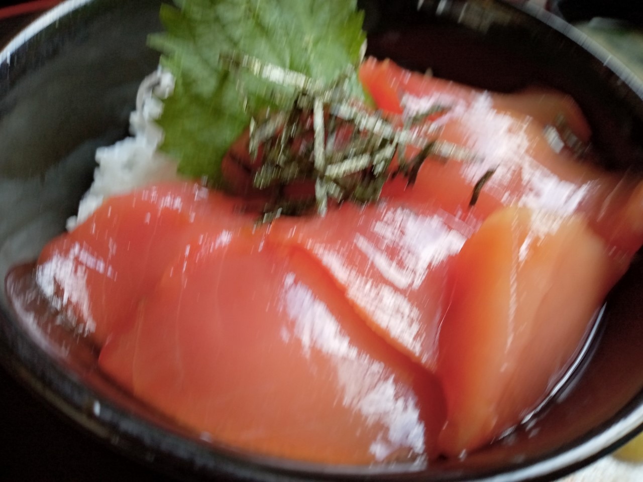 何度か訪れたことのあるお店です。ここは、ボリュームがあることで有名です。以前は、おすすめの海鮮かき揚げ丼をいただいてギブアップしました。今回は、メニューの写真を見て、一番少なそうなものを選びました。マグロの漬け丼です。しかし、出てきたマグロの漬け丼は、量も多く、写真には写っていなかったサラダが付いていました。うれしいですね。今回は、何とか完食しました。おいしくてボリュームがあるので、店内は混雑しています。また、お腹をすかせて来ようと思います。