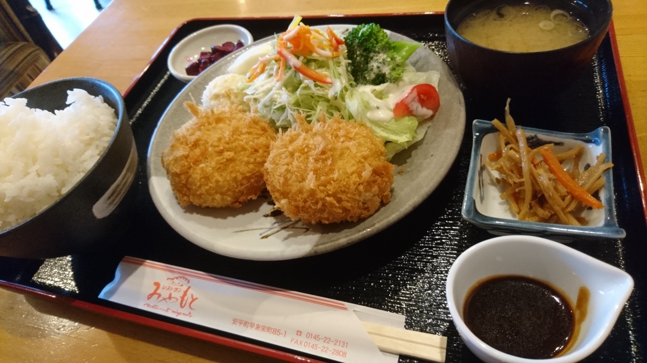 安平方面に行くと、寄る飲食店が2つあります。その一つが、ここレストランみやもとさんです。いつ行っても混んでいます。なにせ、おいしくてリーズナブル。安平町産の野菜や肉が食べられます。この日は、カマンベールコロッケを注文しました。出てきたのは大きなコロッケが2つ入ったおしゃれなランチです。コロッケを割ると、中からトローっとしたチーズが出てきます。使っているジャガイモも大きく食感があります。ニンジンで甘みを出し、安平のコロッケという感じです。サラダもシャキシャキと新鮮で大変おいしくいただきました。