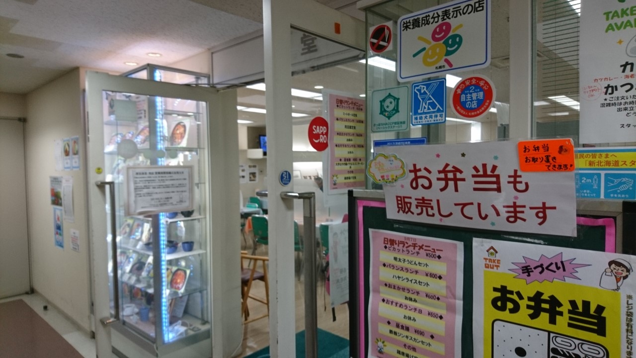北海道庁の地下にある食堂です。麺から定食、丼物と何でもあります。しかも安い。しかし、味は「?」が付きます。個人的には、器がプラスチックなのもNGです。セルフサービスで、ご飯を受け取るときに、「ありがとうございます」と言っても無反応。食べ終わったときも、「ごちそうさまです」と言っても無反応。寂しいですね。昼はかなり混みますが、エネルギー補給の場であって、食事をするという感じではありませんでした。プラスチックの器は仕方ないにしても、「ごちそうさま」と言ったら反応してほしいと思います。