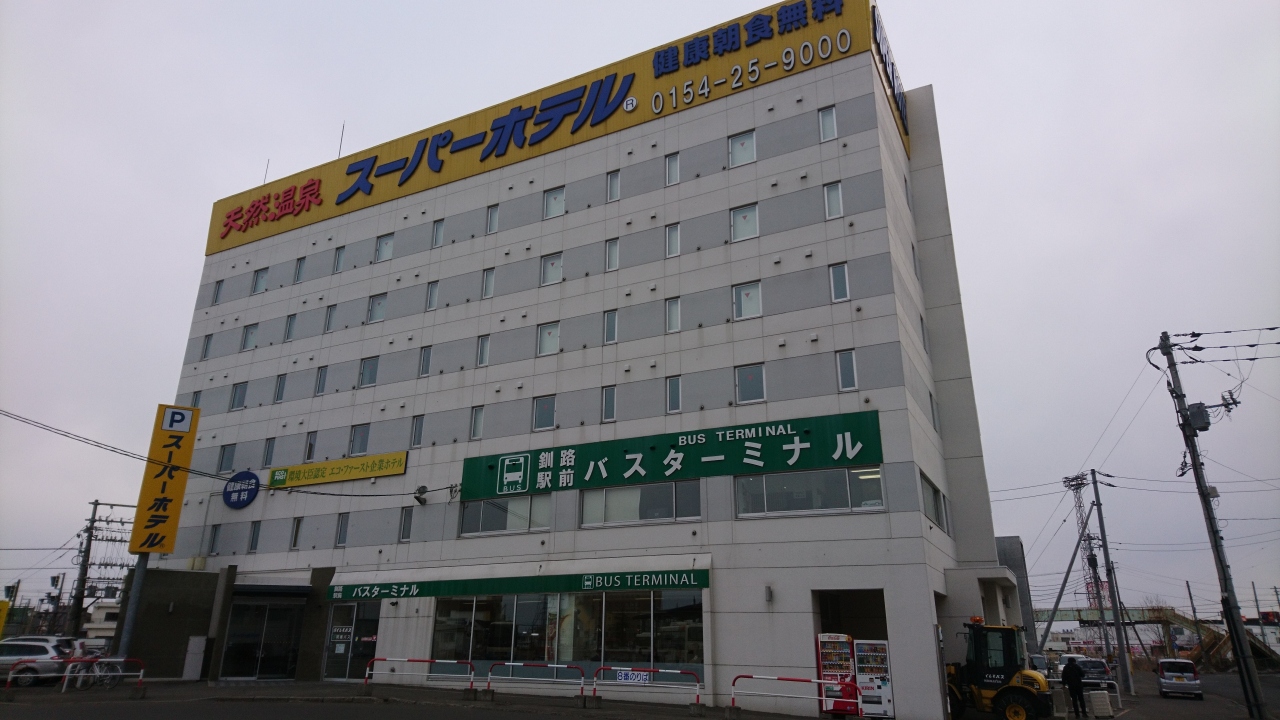 JR釧路駅のすぐ横、しかもバスターミナル直結のホテルです。しかも、温泉が付いていて快適でした。ただ、JR釧路駅の近くには、夜、食事をするところがないので、不便でした。朝は、駅の中のパン屋さんが、朝からやっていました。部屋も広くはありませんが