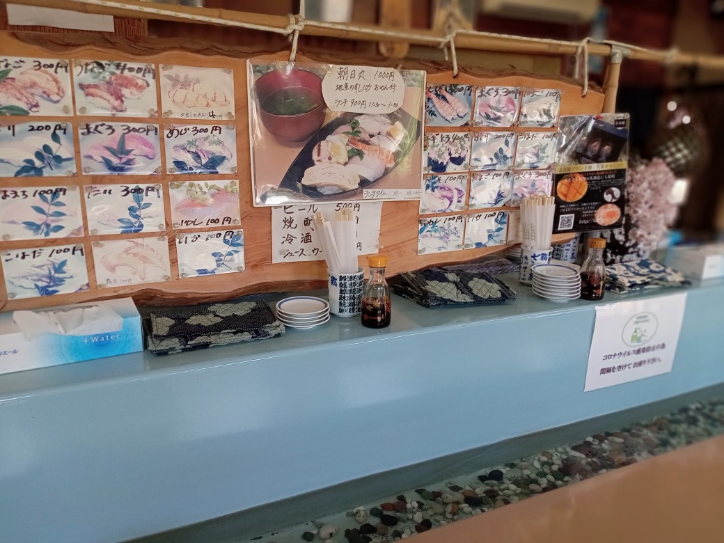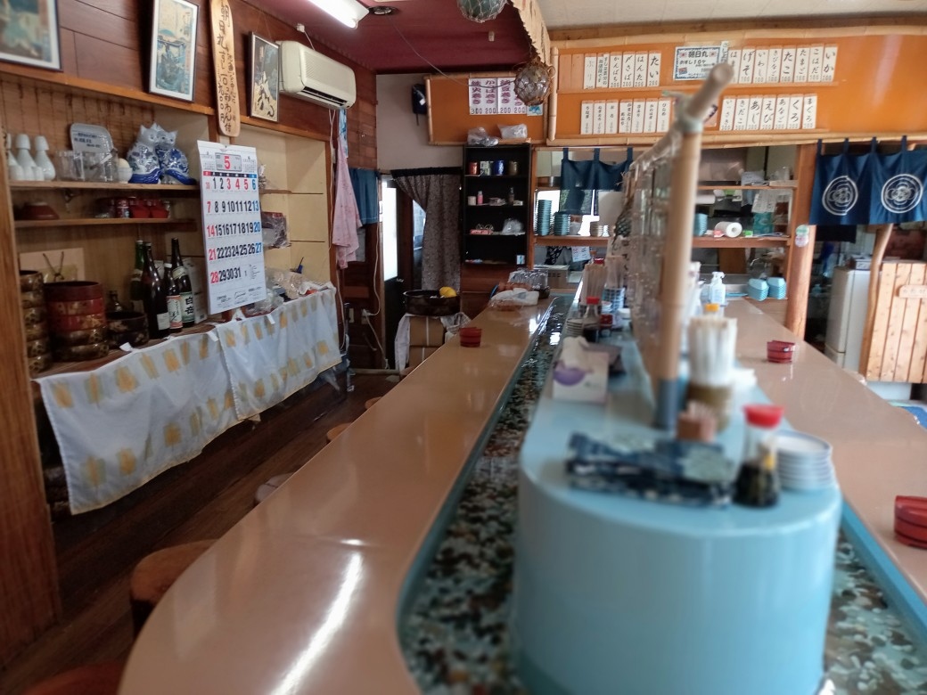 天草の市街地から少し離れたところにあります。気さくな大将がいて「寿司はかがれてくるからね、うまくとってね」と言います。見ると目の前に、流しソーメンをするような感じで水が流れています。?と思っているとやってきましたお寿司が船に乗って。子どもは喜ぶと思います。お寿司の味は普通です。ネタは、まあまあ新鮮です。ランチタイムだったので、値段は安かったです。