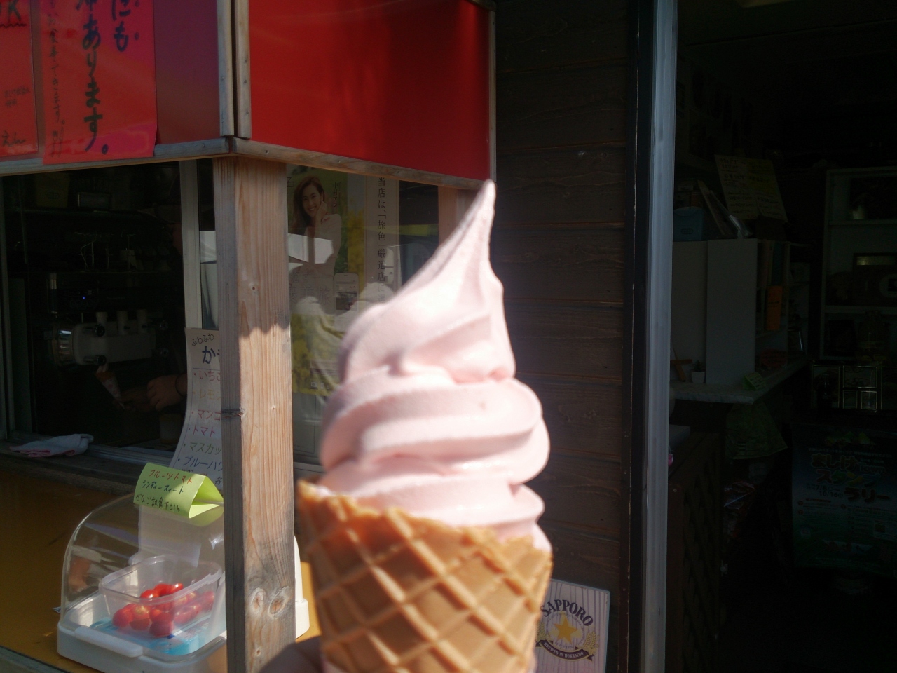 増毛町の、メインストリートに面したところにある軽食屋さんです。軽食屋さんといってもテラス席がメインの開放感あるお店です。ピザやパスタがありますが、ここでおすすめは、ソフトクリームです。地元増毛の果樹園でとれた果物を使ったソフトクリームが最高です。この日は、増毛産のイチゴを使ったソフトクリームをいただきました。甘いソフトの中に、ほんのり酸っぱいイチゴの相性が最高のソフトクリームでした。天気も良く、テラス席でいただく、ソフトクリームは最高でした。