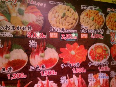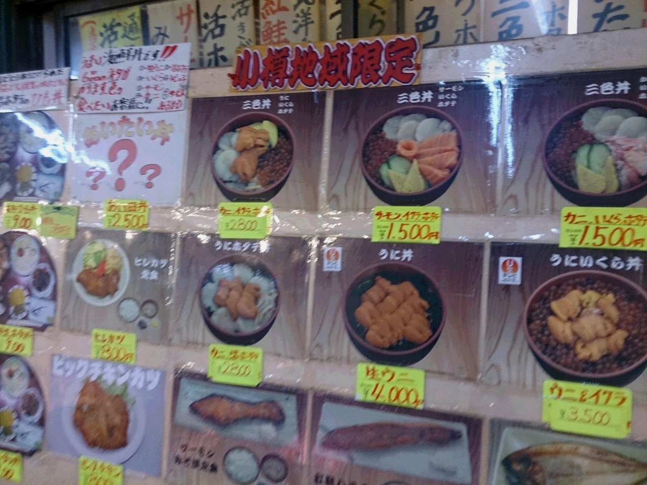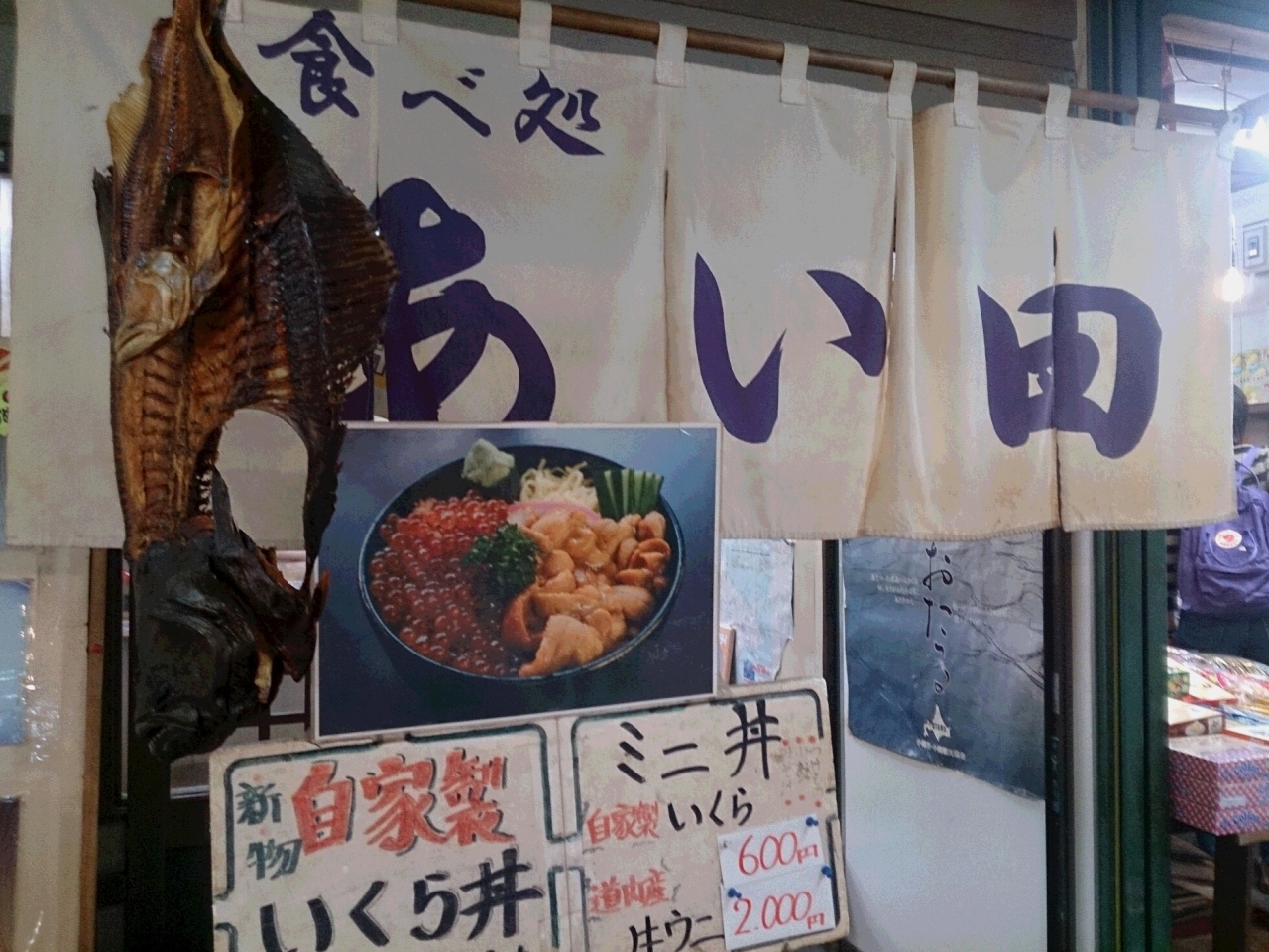 小樽観光に来て駅に近いホテルに泊まり、朝食も三角市場の食堂でいただき、昼食も、またここの市場に来ました。海鮮好きですね。ここは、寮の少ない丼もあるので、いろんな種類の海鮮が食べられます。その分、高くつきますが…。それでも、せっかく小樽に来たのですから、イクラ丼と三色丼をいただきました。とてもおいしかったです。