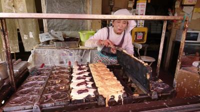 ぴんころ地蔵を見に行く前に寄ったお店です。お店の前を通ったら、中でおかあさんがひとり黙々とたい焼きを焼いていました。あれを見たら、買わずにはいられません。日膣ですが、たい焼きを買いました。ずっしりと重いたい焼きで、中にはあんこがぎっしりです。予想以上のおいしさで感激しました。たい焼きを食べながら、ぴんころ地蔵へ向かいました。