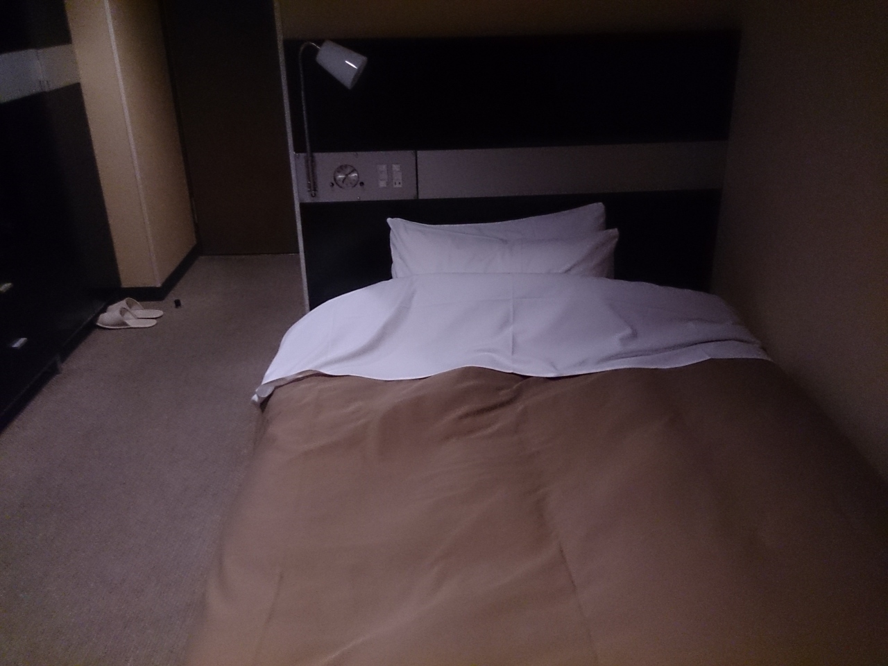 帯広の市街地から結構離れたところにありました。荷物も多かったのでタクシーに乗りました。行き先を告げると運転手さんが、「あ~、昔ラブホテルだったところね」と余計な情報ありがとうございますという感じでホテルに着きました。言われると何となくそんな雰囲気でしたが、中に入るとタクシーの運転手さんの言う通りでした。部屋は二重のドアでやたら広い部屋です。普段泊まるホテルの3~5倍の広さです。お風呂も洗い場が異様に広かったです。せめて内装を改築すればよいのにと思いましたが、のんびりできたのでよしとしましょう。