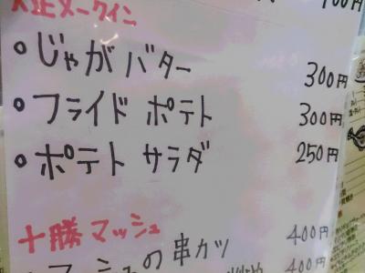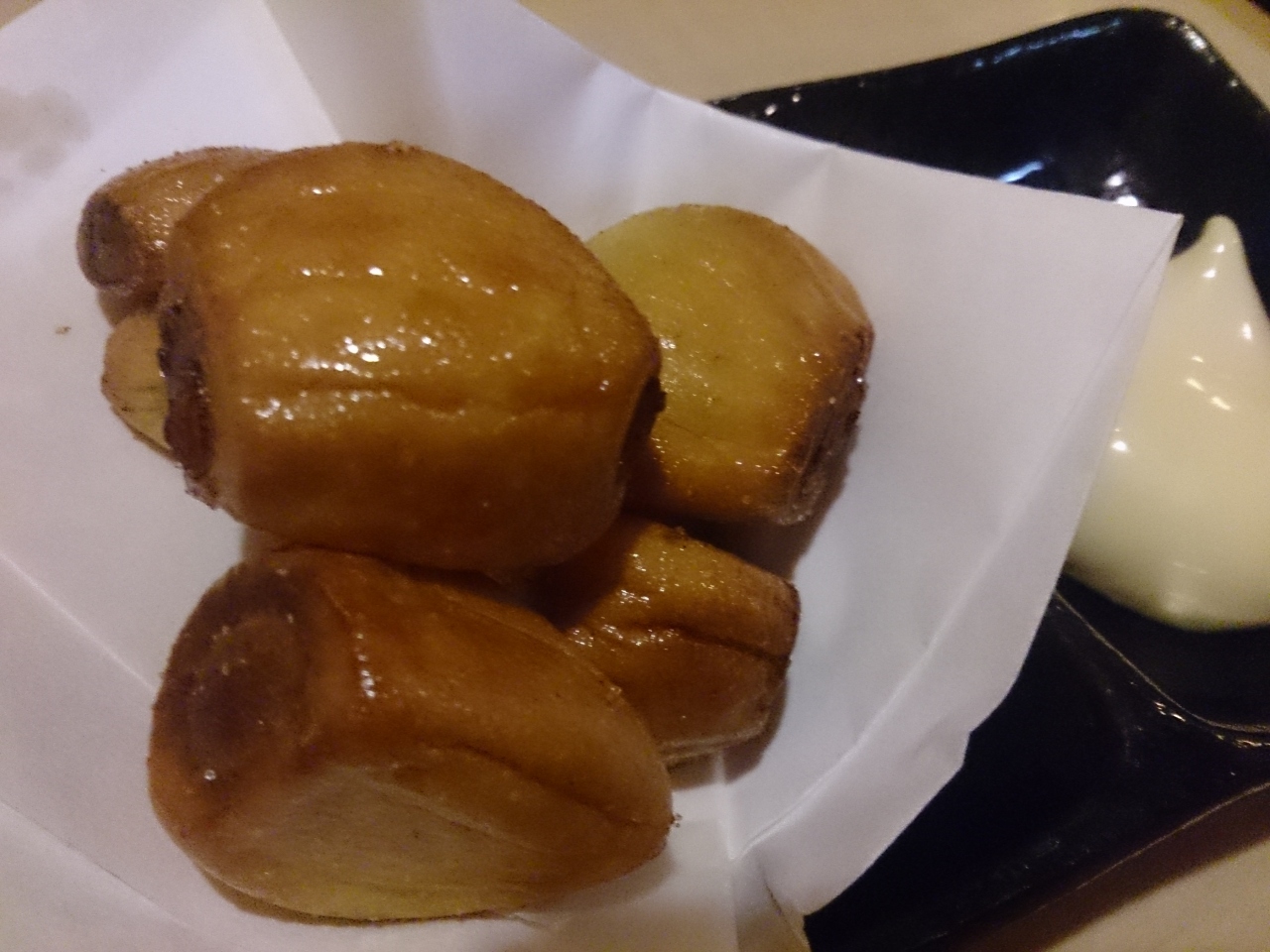 帯広に行くと必ず寄るのが、ここ「大地のあきんど」さんです。農家を経営するご主人がはじめられたお店で、十勝の野菜がおいしくいただけます。いつ行っても新鮮な野菜が、おいしく調理されます。行くと必ず頼むのが、ポテトサラダに長いものお好み焼き、そして十勝牛のステーキです。どれもおいしく、ボリュームがあります。先に挙げた3品はいつも頼むので、あまり他のものが注文できません。スタッフの方が気を聞かせて、「ハーフサイズにしますか?」とも聞いてくれますが、いつも一人前を頼んでいます。この日は、揚げたニンニクも頼み、ご機嫌です。十勝はおいしいものの宝庫ですね。