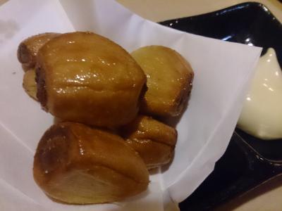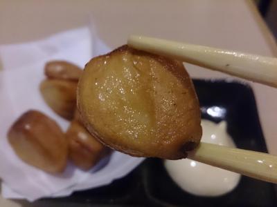 泊まったホテルの1階にある串カツ屋さんです。このホテルは、温泉付きなので、少し早めにチェックインして、ゆっくり温泉に入っていました。チェックインの時に見て気になっていたのでクールダウンを兼ねて訪れました。湯上りですが、私は服に着替えましたが、相方さんはホテルの室内着のままですが、ここは入れます。串カツは、サクサクの大きなものでした。アツアツを頬張り、ビールで流し込むと幸せを感じます。ちょっと一杯のつもりでしたが、ビールにハイボールと少し酔いが回りました。店を出るときには、人がいっぱいいました。あまり広いお店ではないので、予約をしていくとよいかもしれません。