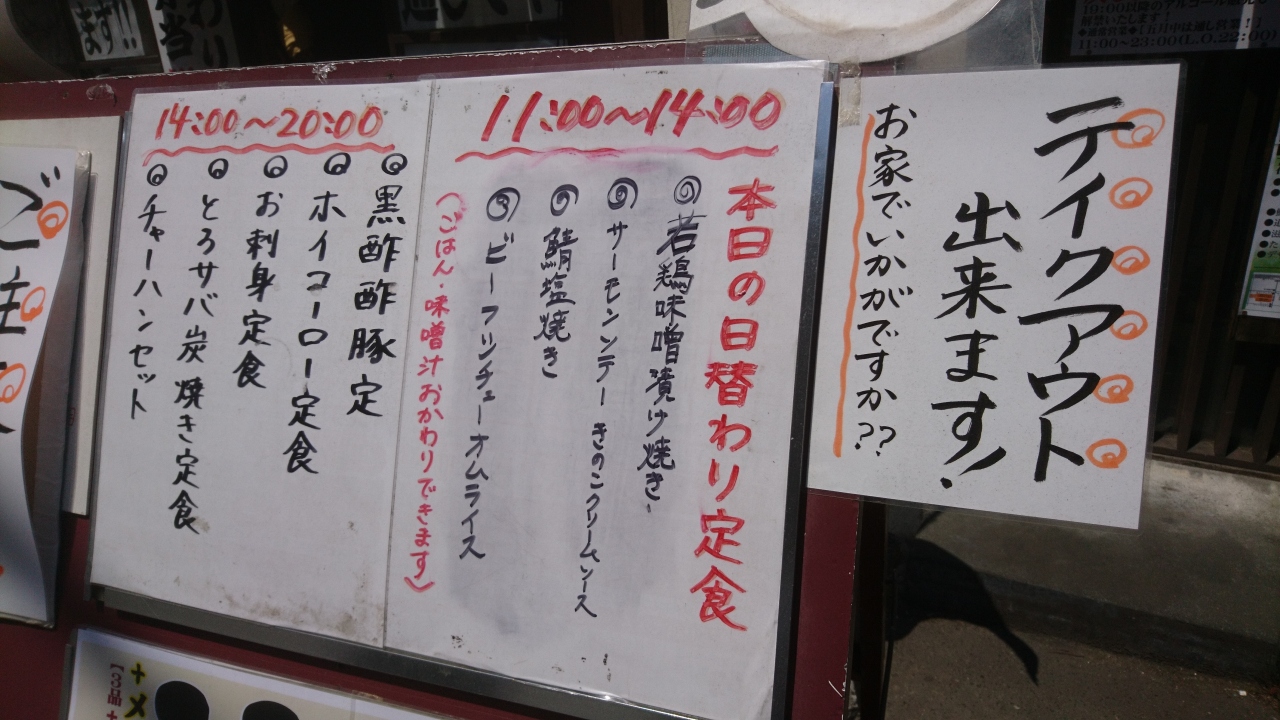 居酒屋さんですが、ランチもやっています。夜に行くと、コースが充実していて、その月のコースと一品料理を注文しています。そんな居酒屋さんですが、ランチが最高です。選べるメインの料理に小鉢が3品ついていて最高です。しかし、新型コロナウイルスの影響でテイクアウトを始めました。こちらもとてもおいしく、再開されたらまた、昼も夜も行きたいです。