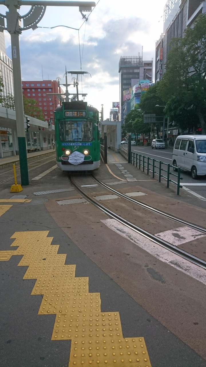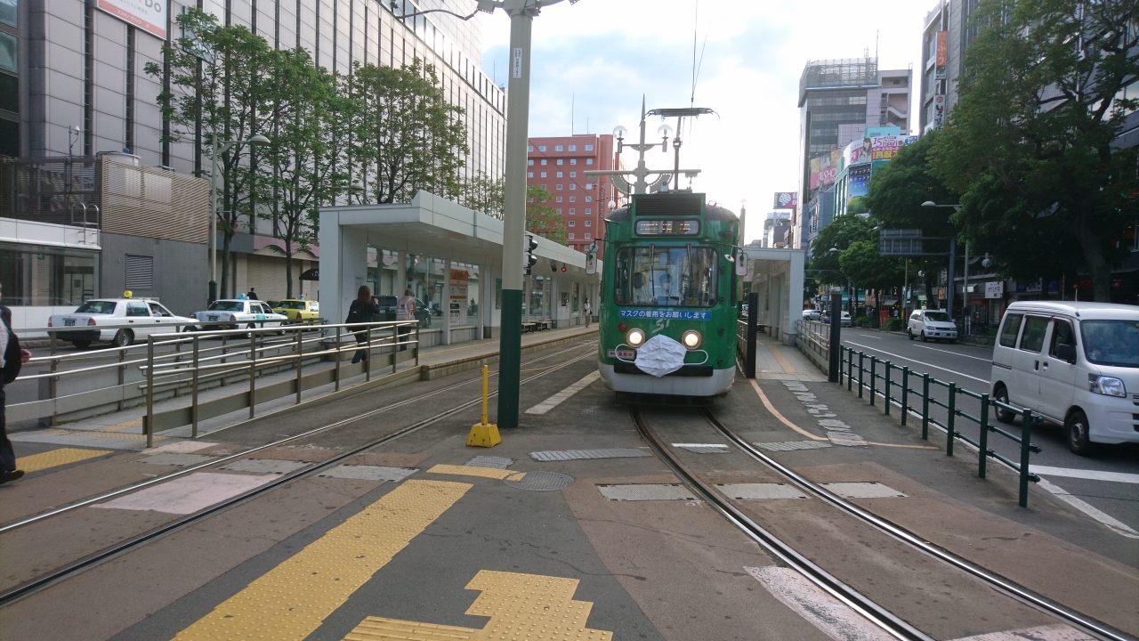 札幌市内を走る路面電車です。数年前にループ化され、山手線の様に循環線になりました。路面電車のある街は、長崎にしても函館にしても風情がありますね。そんな札幌の路面電車ですが、新型コロナウイルス感染防止のため、マスクをつけた電車が登場しました。テーブルクロスとゴムホースで作ったということですが、2輌しかなく、見ることができラッキーな気分になりました。