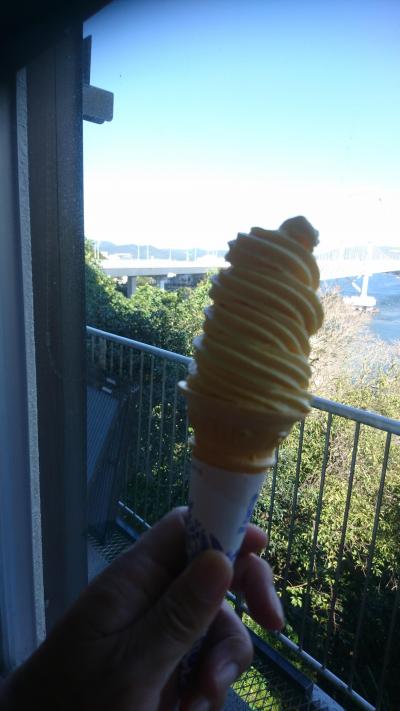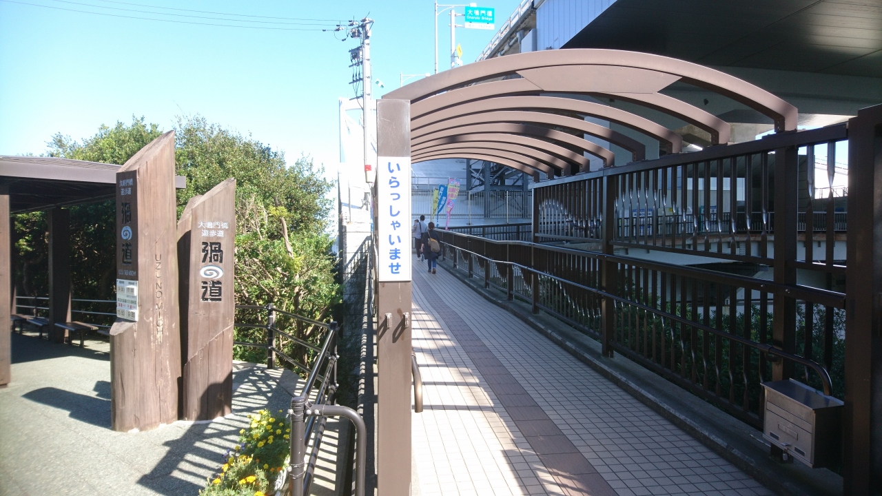 鳴門公園に近いところにある渦の道。珍しい名前の施設です。名前の通り、世界一の鳴門の渦潮を真下に見られる施設です。真下に渦潮が見られると思ったのですが、失敗したことが一つ。ここに来る前に渦潮の観光遊覧船乗ったのですが、これに乗った時間が渦潮のピークでした。おかげで迫力ある渦潮を間近で見られました。ということは、ここに来た時にはピークを過ぎていたということです。そのため穏やかな海原を眺めるということになりました。観光遊覧船で渦にもまれることを優先するか、足元に広がる渦潮を見下ろすか、よく考えた方が良いです。落ち込んでいると、入り口にいるガイドのおじさんが、面白い話をいっぱい聞かせてくれました。そのお話で、また来たいと思いました。