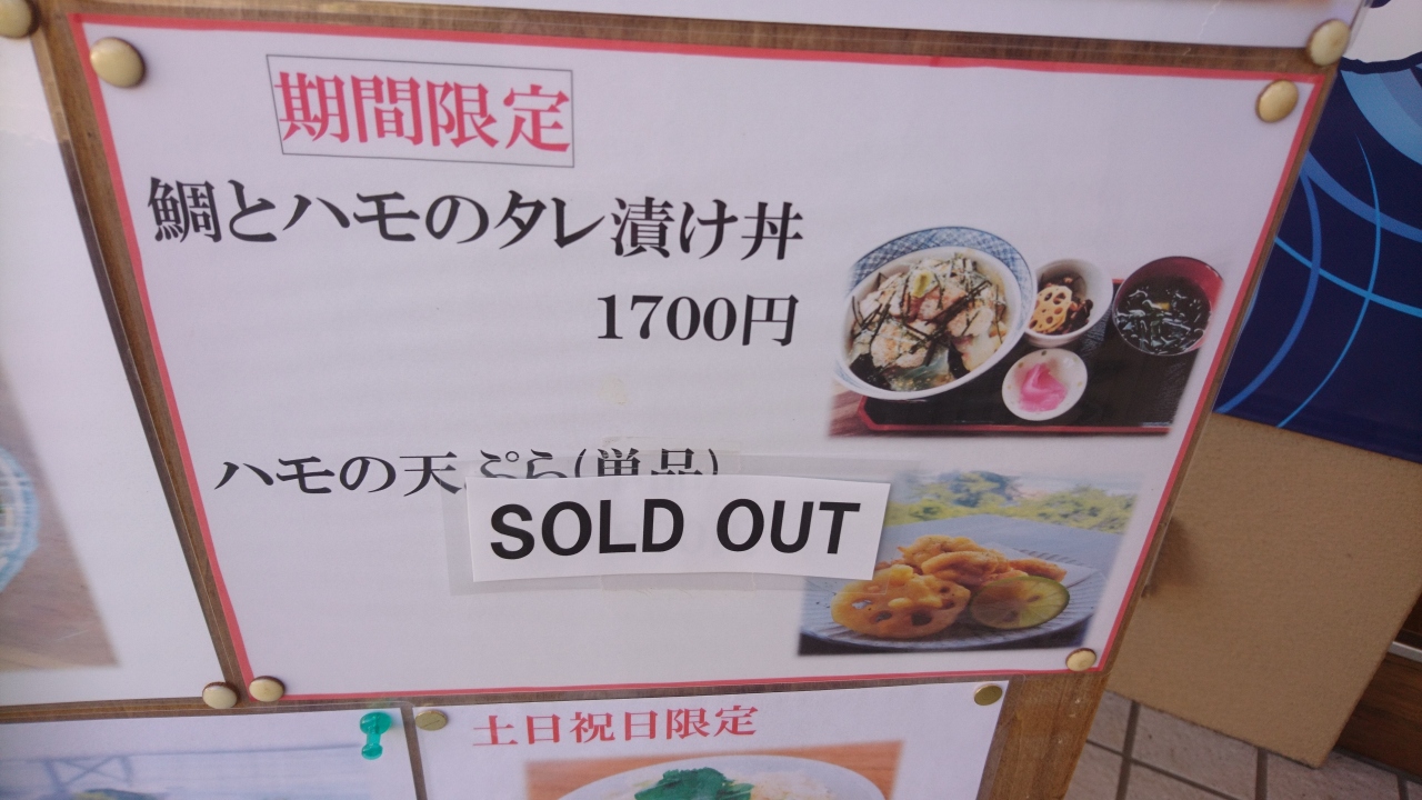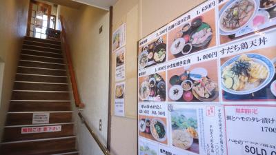 大鳴門橋をのぞむ千畳敷の近くにある郷土料理店です。看板にあるように鯛調理のお店です。しかし、それより先に目についたのは、はも料理の上りです。実は、鱧が大好物。ウナギより好きです。早速いただこうかと思ったとたん、SOLD OUTの文字が…。残念。しかし、鯛も好きなので気を取り直して鯛茶漬けをいただきました。これが絶品。新鮮なタイに出汁のきいたお茶は、より鯛を新鮮にしたような感じでした。すっかり満足して鱧のことは、どこかに吹き飛びました。