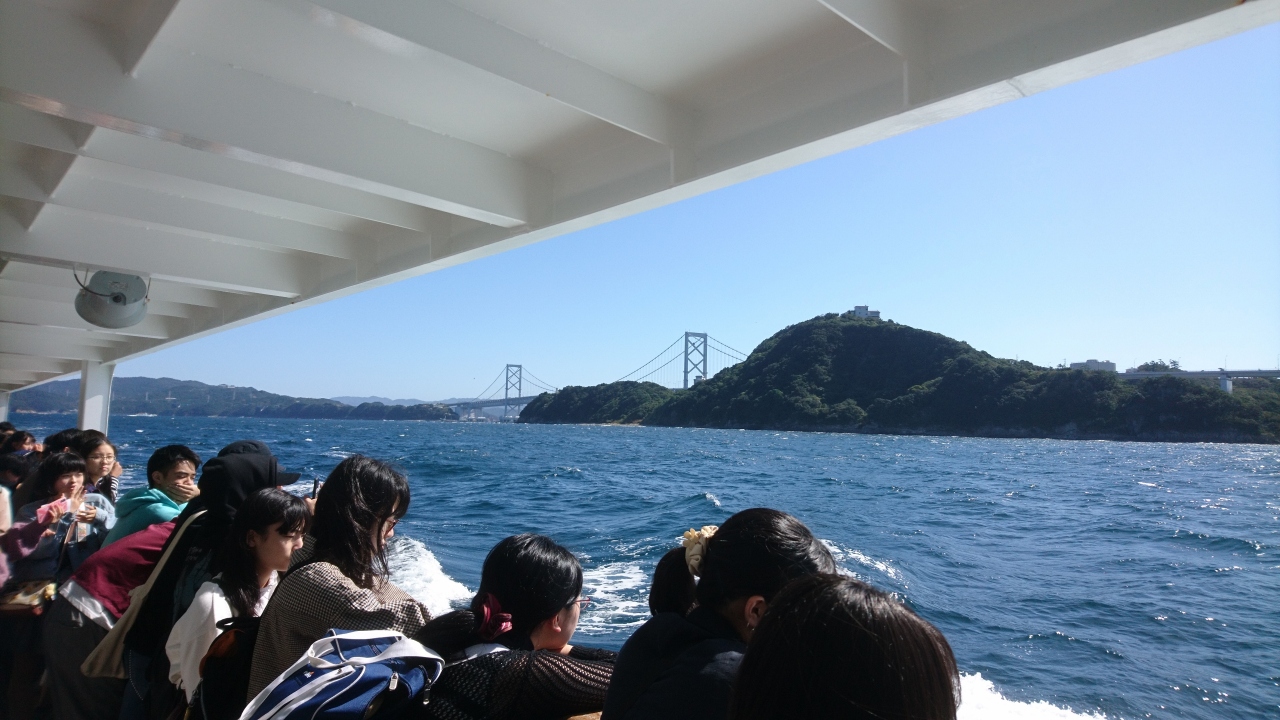 鳴門に来たら、絶対見たい渦潮。この渦潮を海中から見ることができる船がアクアエディです。最初は海中からだと水しか見えないだろうと思っていましたが、実際に見ると、潮の流れの激しさがわかり、意外と面白かったです。また、船が小さいので潮の流れを受けやすく、迫力もありました。大きな船にも乗りましたが、こちらの方がおもしろかったです。