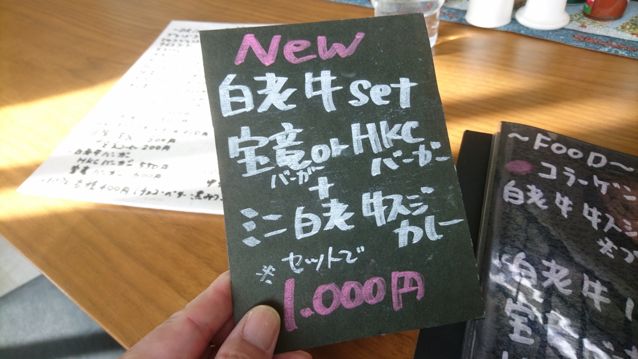 白老の商店街にあるカフェです。とてもおしゃれな造りですが、なぜか、ラーメン屋さんのような名前がついています。店内は明るく開放感があります。そして、ここは白老名物の白老バーガーと白老牛のカレーのセットがあります。白老に来たら白老牛をいただきたいものですが、他でお昼をいただいてきたので、今回は飲み物だけにしました。次は、白老牛のハンバーガーとカレーのセットにしようかと思います。