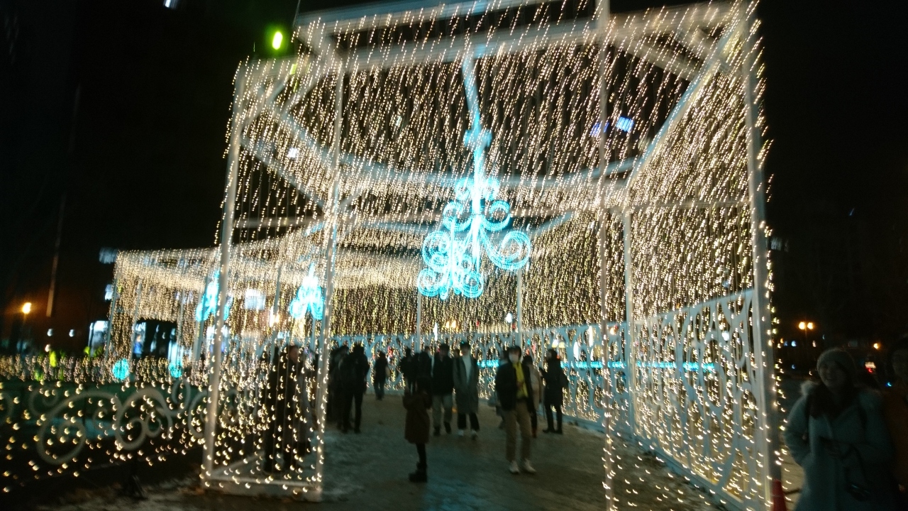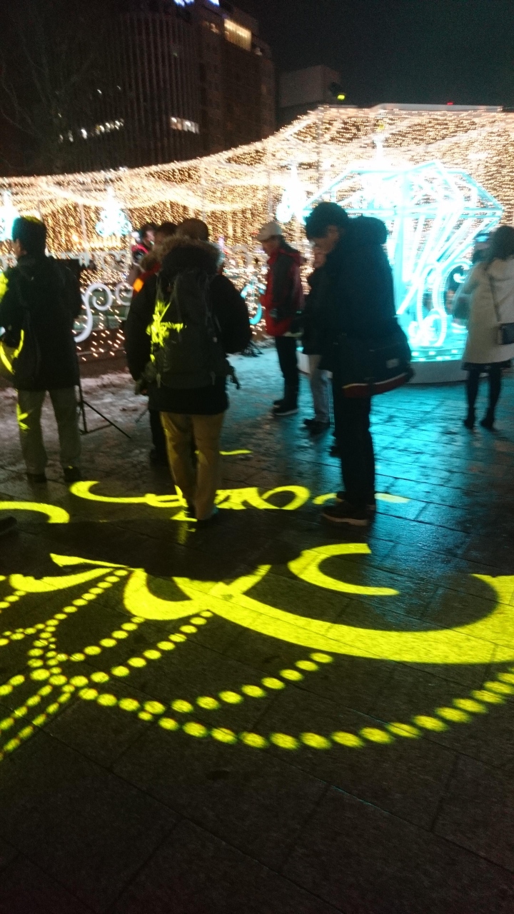 札幌の大通公園に11月からお目見えするイルミネーションです。毎年、少しづつ配置などが変わります。以前は、ガスの炎があったり、シンプルな明かりだったのですが、最近は、LEDに変わり、なんかあたたかみが減ったような気がします。しかし、今年は、アイヌ文様のものがあったり、地面にも光が映し出されたり、美しさが際立っています。晴れた日、雪の降っている日と何度も見たいイベントです。