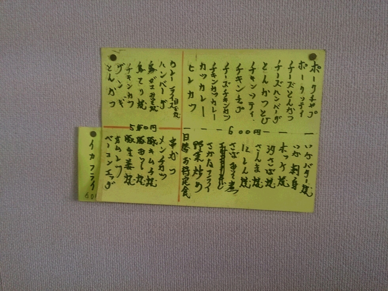 札幌のJR白石駅から歩いて5分ほどのところにある食堂です。ここの日替わり定食が感動ものです。おじさんが一人でやっていますが、そのボリュームと味、そして値段は、これまで行った食堂の中で最高でした。まずは、量。メインのおかずに小鉢などがついています。栄養のバランスも考えられていて、親父が作るおふくろの味です。ご飯も、大盛が無料ですが、普通でも多いので十分だと思います。値段も、驚きの600円で、大変助かります。客も高校生からサラリーマンと人気でした。