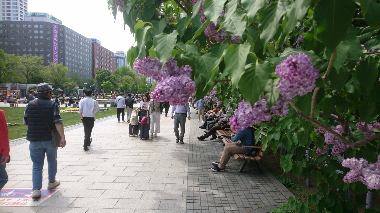 札幌の木、ライラック。このお祭りです。ライラックは、札幌の北星学園女子中高の創設者、サラ・クララ・スミスさんが持ち込み、広めたと聞きました。それが今や、札幌を代表するお祭りになりました。いつもの年は、「リラ冷え」という言葉があるように肌寒い日が多いのですが、この日は、天候に恵まれ最高の日でした。ライラックの木の下を通るとふわっとライラックの香りがするのも素敵ですね。