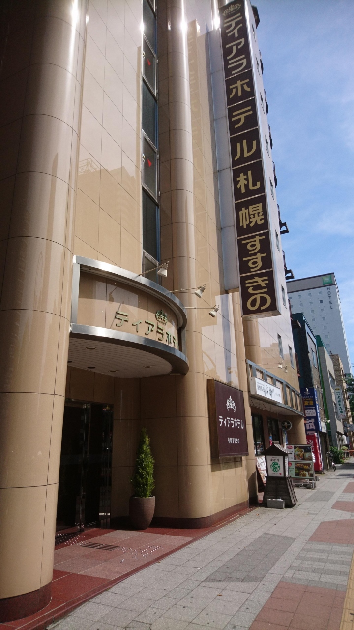 ススキノにあるビジネスホテルです。中は、普通です。部屋もあまり広くはないですが、清潔な感じのするホテルです。ビジネスマンというよりカップルが多く利用するのか(私たちも一応カップルですが)ツインよりダブルの方がかなり安い印象でした。でも、大浴場もあり、歓楽街にあって十分くつろげるホテルでした。
