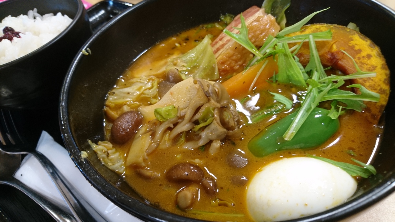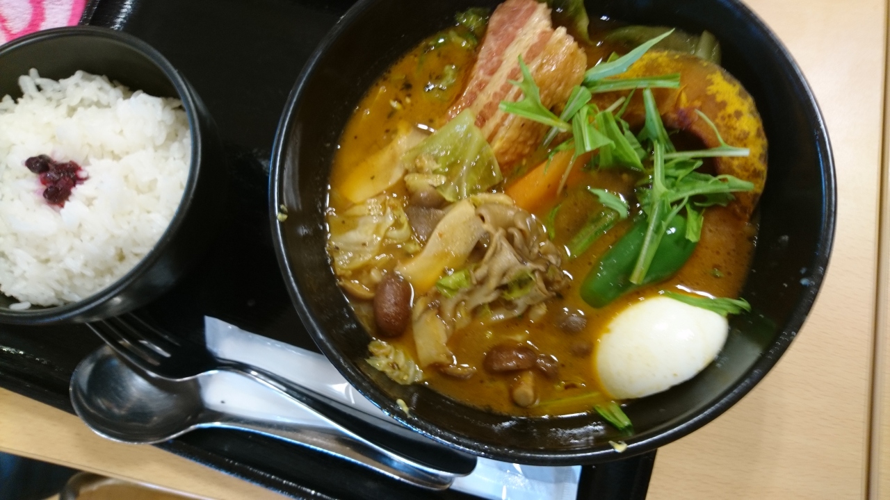 あたたかくなってきたのでドライブへ。別に、目的はなかったのですが千歳方面へ行きました。千歳の道の駅、サーモンパークでランチをとることになりました。そこで、人気スープカレー店、奥芝商店さんを発見、迷わずここにしました。注文したのは、野菜たっぷりのスープカレー。ここが、他の奥芝商店さんと違うのは、ライスにハスカップが乗っていること。当然、のせていただきました。ハスカップの甘酸っぱい味がアクセントになってカレーが引き立ちました。食べるところは、フードコートのような場所で、少し落ち着かない感じはしましたが、待たずに食べられるのは良かったです。陽気に誘われ、ドライブに行ったかいがありました。