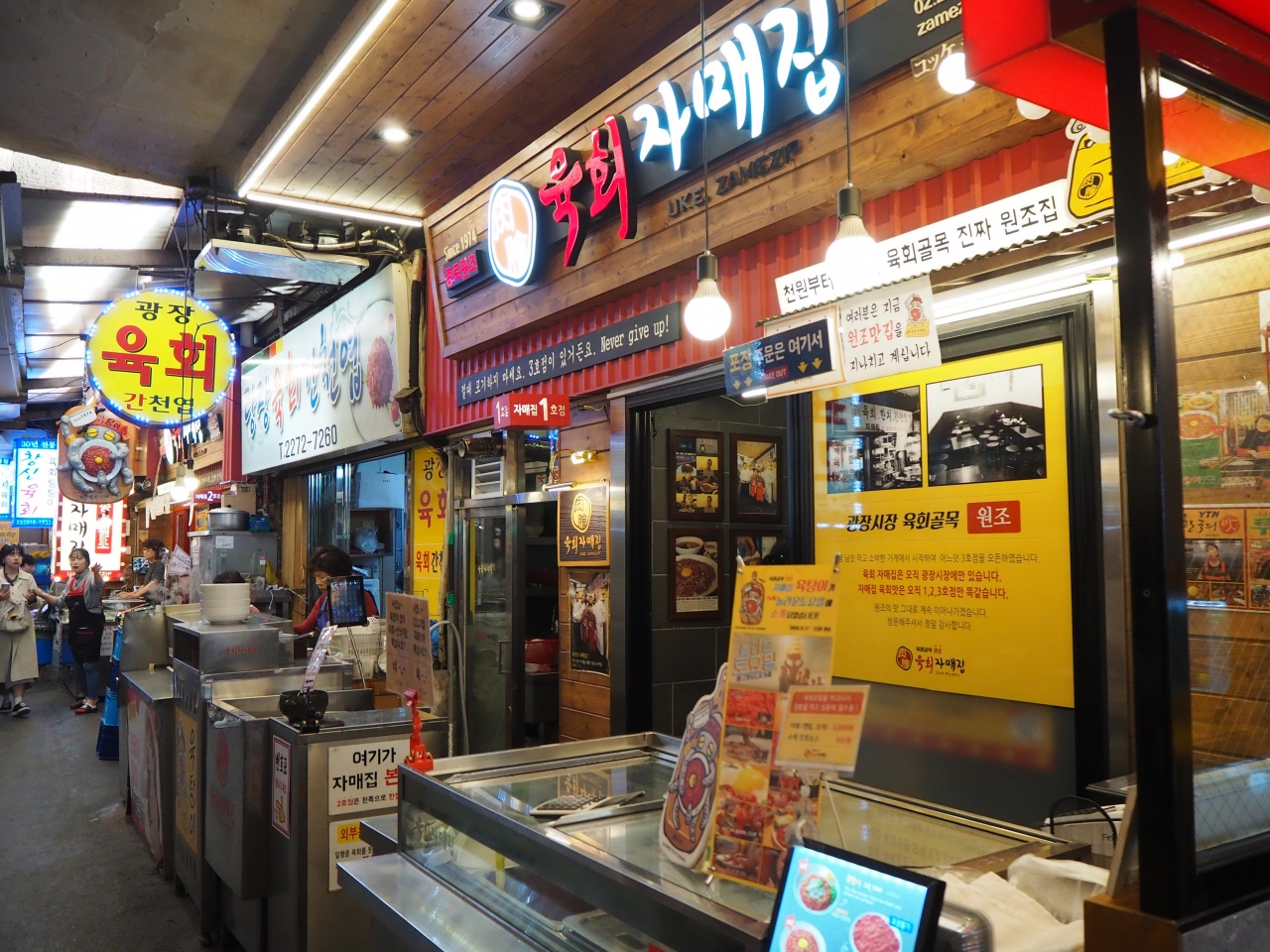 広蔵市場内、ユッケ通りと呼ばれる路地の中ほどに店舗を構えています。