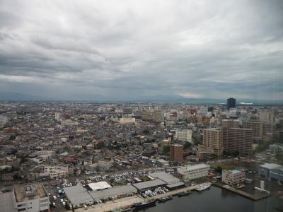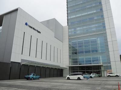 新潟駅から無料シャトルバスで5分程、万代島にそびえ立つ高層ビル内にあるホテル。高級ホテルにカテゴライズされてましたが、夏休み期間でもリーズナブルな価格で宿泊できます。