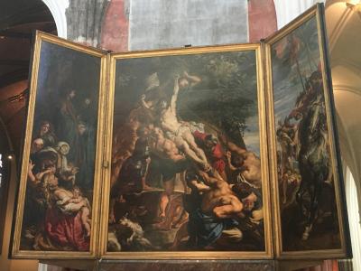 教会で入場料6ユーロは高いと思いますが、中を見ればそれも納得、教会の姿に加えて、ルーベンスの4つの絵画や、それ以外にも沢山の絵や彫刻があり、その姿は美術館と言った方がいいのではないかと思えるほどでした。アニメの影響で日本人観光客が多数いました。