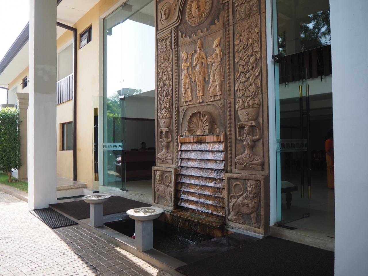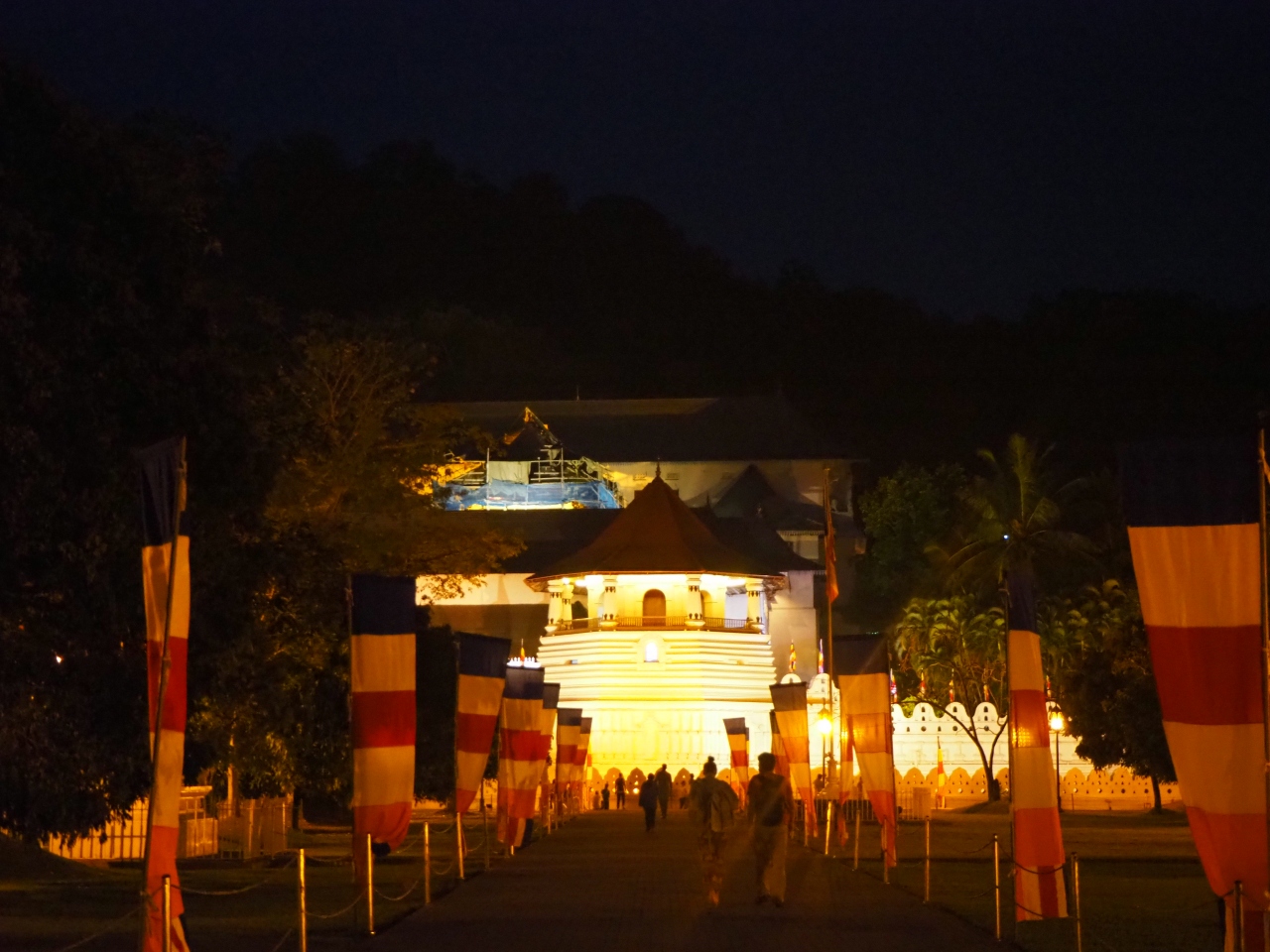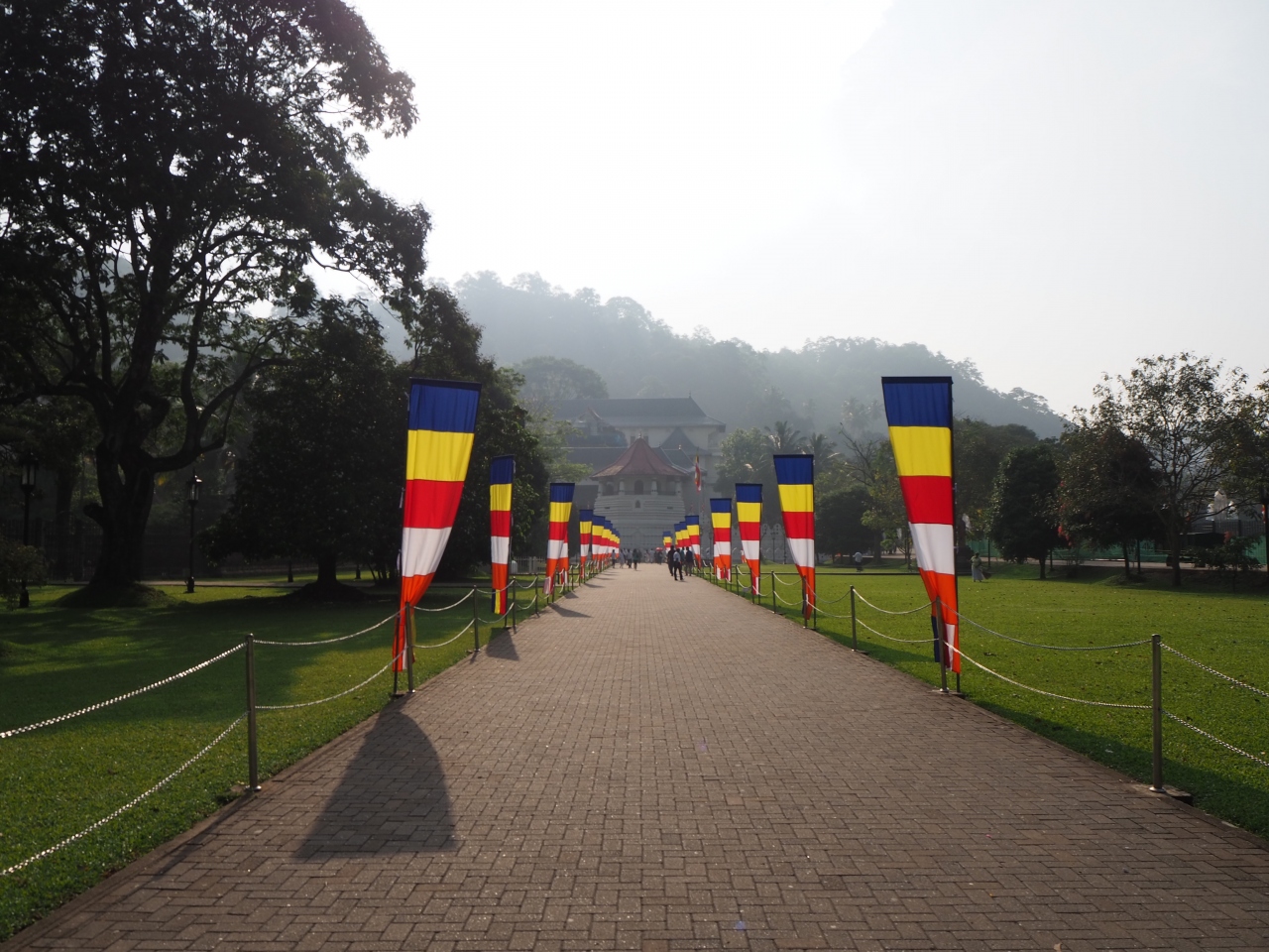 クイーンズ・ホテルの対面にセキュリティチェックのゲートがあり、ゲートの先しばらく歩くと仏歯寺の建物に辿り着きます。ここまでは無料で入れますが、建物内は有料(Rs.1,500)。建物向かって右にチケット売り場(自動)があり、一度正面入口通り過ぎた所で靴を預けて(無料)ようやく建物内に入場できます。