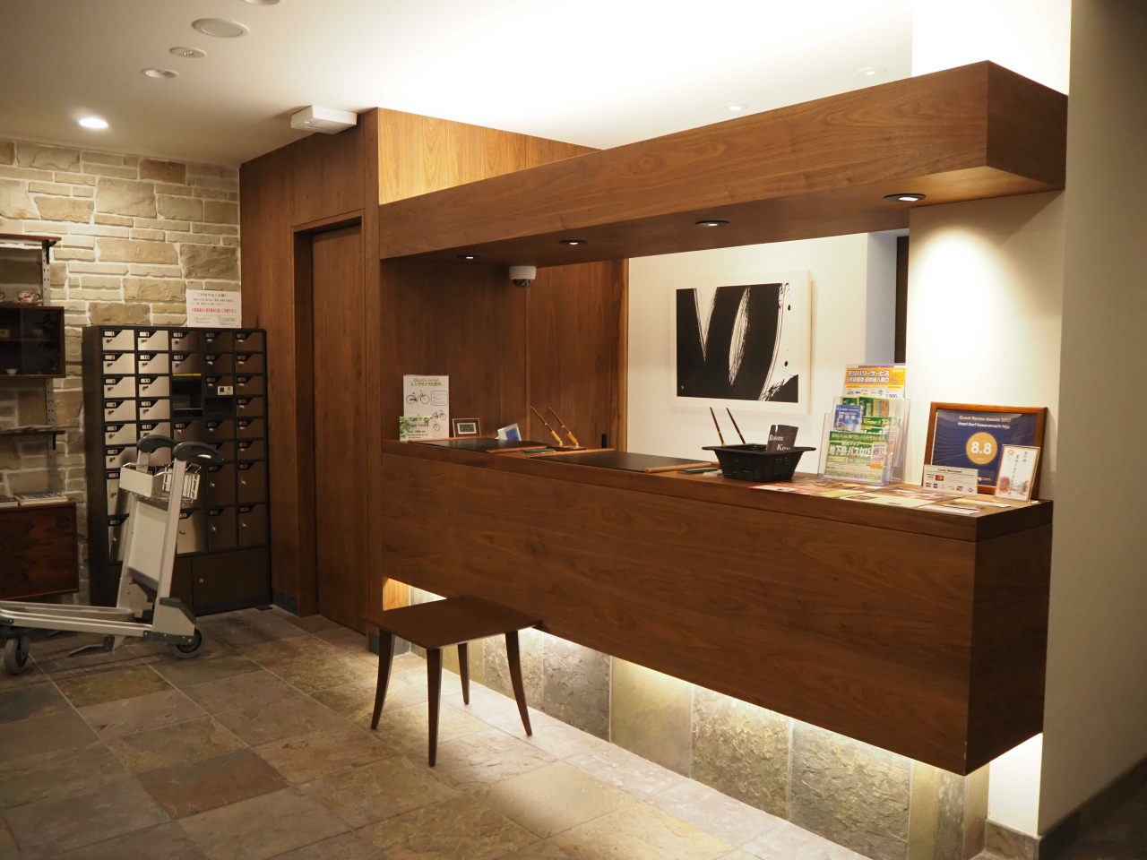 静かな路地の途中に位置し、外観は和を意識し京都の街の雰囲気に溶け込んでいます。