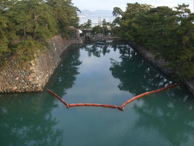 堀には鯛やフグなど海の魚が泳いでいるとの事でしたが、私が行ったときは水の透明度が低くその姿は見えませんでした。- 旅行時期