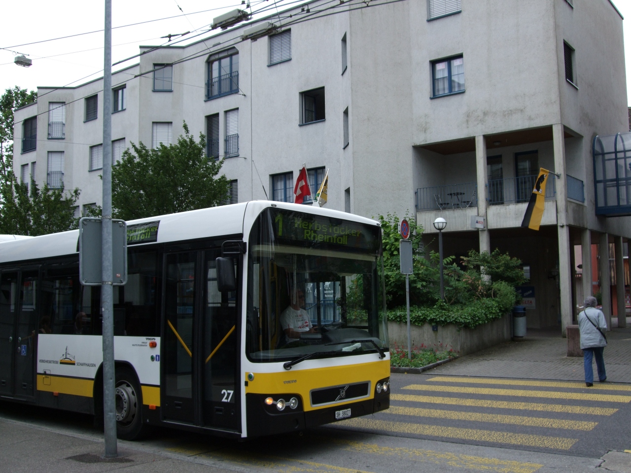 シャフハウゼン駅前からバスに乗って15~20分位。(バス前面"Rhainfall"の文字を見つけて下さい。3年前は1番のバスで行きました。)