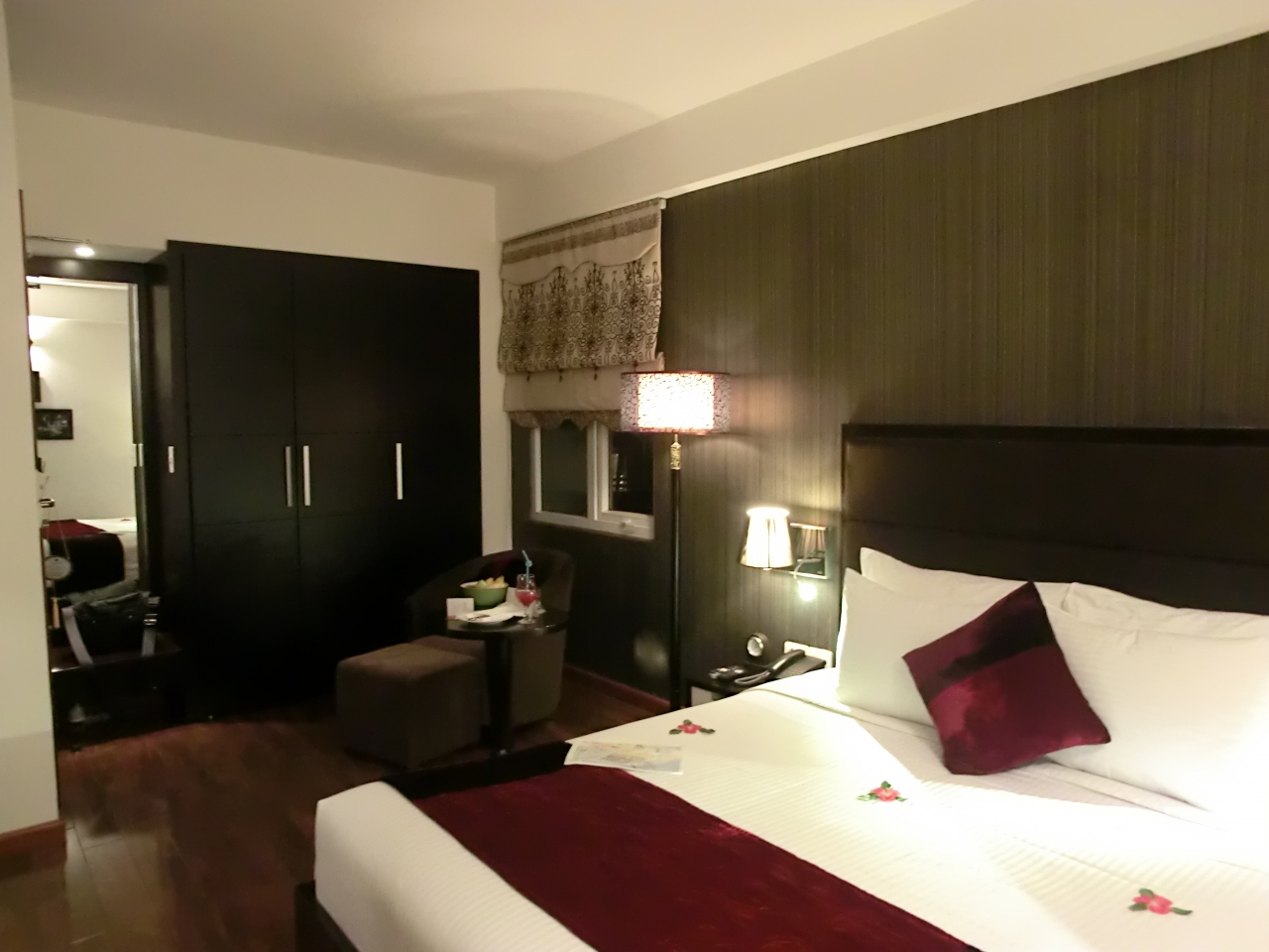 トリップアドバイザーの評価が高く、エクスペディア経由で1泊7,000円しないで泊まれるので3泊予約。バスタブは無いが、部屋自体は全く問題無し。並びに24時間空いてるスーパーや銀行、マッサージ「Dragonfly」あり。ホテルは両替不可。無線LANも部屋で繋がった。