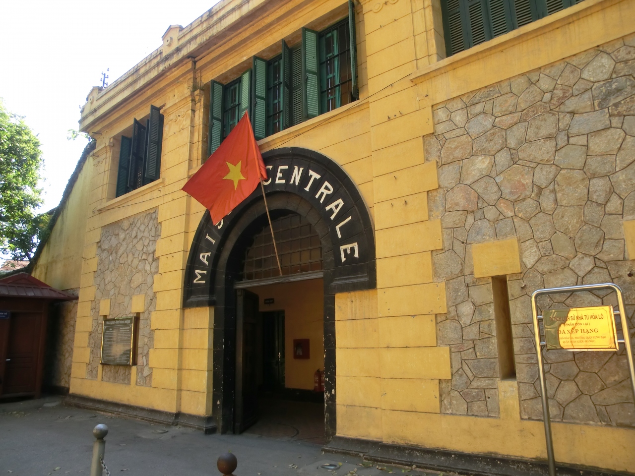 ハノイ大教会から歩いて10分位。隣に高層ビル:ハノイタワーズがあるにもかかわらず、ここは高い壁に囲まれた静かな場所で、その鮮やかな黄色の壁とは裏腹に今でも収容所であるかのような厳格な雰囲気があります。