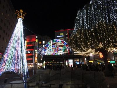 その玄関口「JR赤羽駅」の東口広場に、夜になると灯るささやかなイルミネーション。
