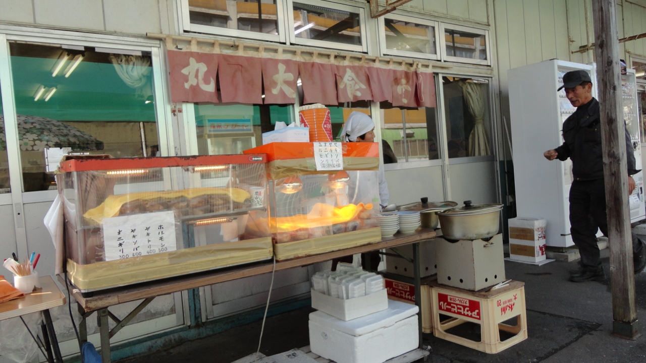 “水沢競馬場・グルメ街”というほど店舗は多くないが、建ち並ぶプレハブ小屋の1軒が、この丸大食堂。