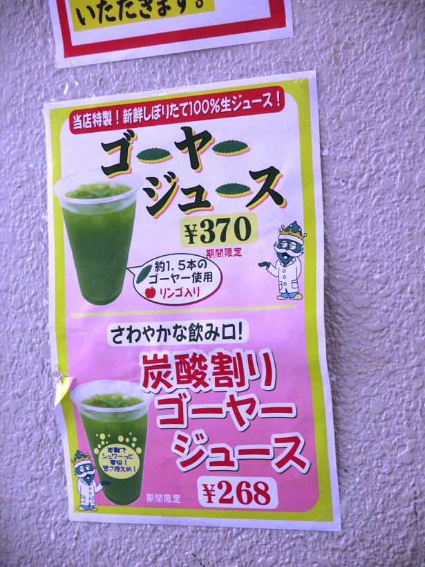 バーガーはまだしも、ジュースは、カップ1杯に、1.5本分のゴーヤーが入っているそうで、キツすぎます。飲みきれませんでした。