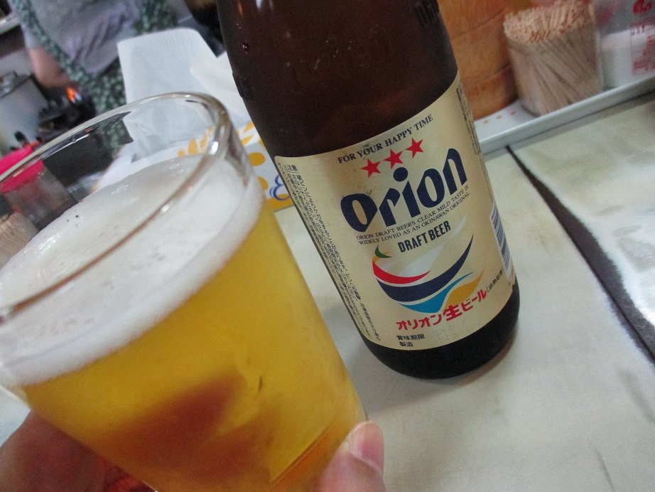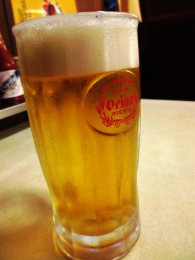 人気メニュー、サーロインステーキは絶品で、さくっと切れるやわらかい肉、添えてある甘い玉ねぎも文句なし!オリオン生を飲んで、幸せな気分に浸ってください。- 旅行時期