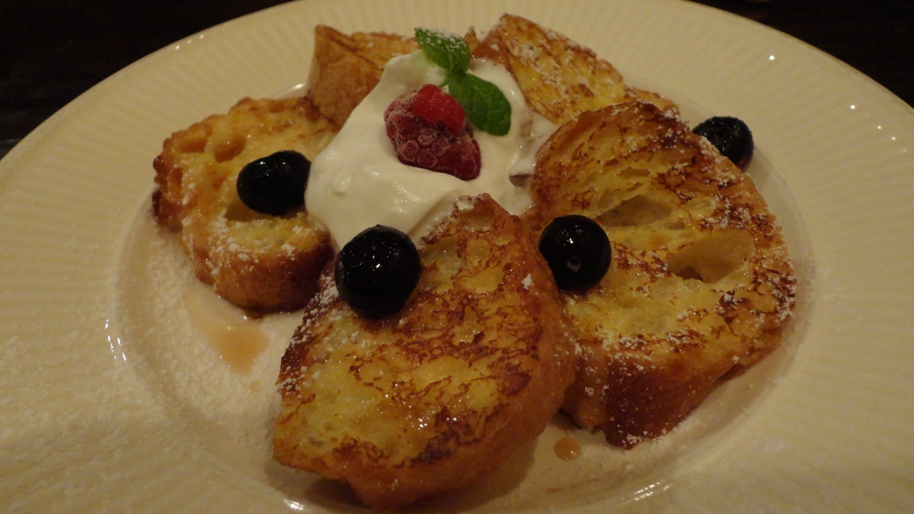 夕方、店の前には多くの人が列を作りますが、そのお目当ては、厚さ5cmはあろうかというフワフワの「ホットケーキ」と、メープルシロップが美味しい「フレンチトースト」