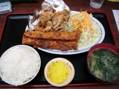 生姜焼きに加え、ちくわの天ぷらが2本、