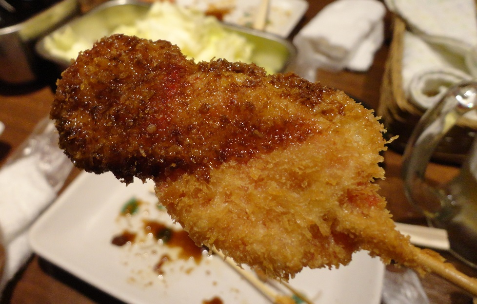 串かつを注文すると、あまり時間を置かずに出てくるので、
